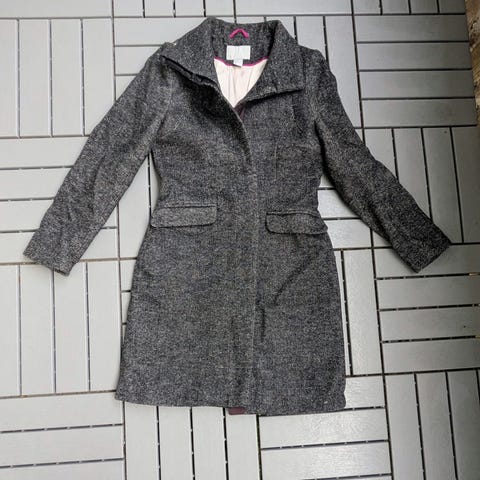 Vintage kåpe i kraftig bevernylon og bomull. Kåpa har for (som kan takast av), glidelås, 4 lommer og belte.