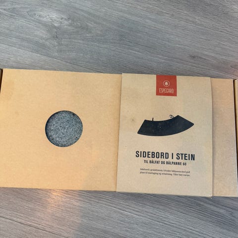 Gryten er ikke brukt, og er fremdeles pakket inn i plastikk. Esken er noe skadet etter transport fra posten.