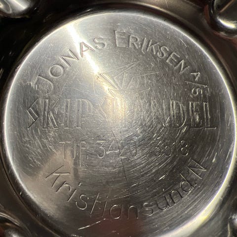 Retro askebeger i messing. Skipsratt/maritimt motiv.
