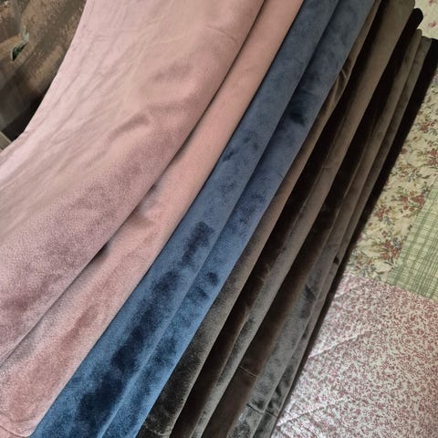 Selger disse gardinene her, de er kjøpt på Kid og er ikke så gamle. Det er 10 gardiner (6 mørkeblå og 4 grå) selger en gardine for 200kr, 2000kr samlet. Selger også 6 puter som matcher med gardinene, selges separert og ikke sammen med gardinene. En pute for 150kr, 900kr samlet.