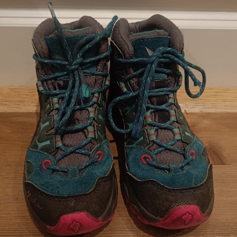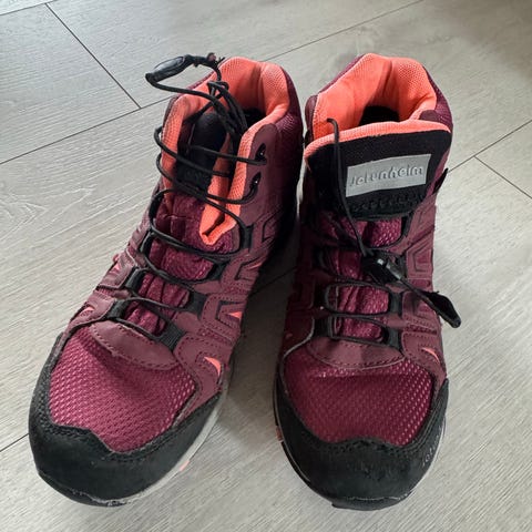 Praktiske overgangssko/ tursko med strikksnøring. Lite brukt da min datter har høy vrist og syntes det var slitsomt å ta av/på skoene
