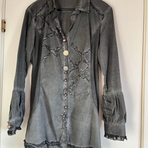 Lang cardigan fra Piro by Klaus Berggreen selges kr 400. Str M, men innvendig lapp er fjernet. Aldri brukt, som ny.