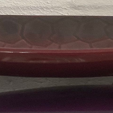 Stor håndlaget skål/fat fra Vest-Tyskland. 24% blykrystall. Synes skålen er et sjeldent eksempel på vakker brutalisme.