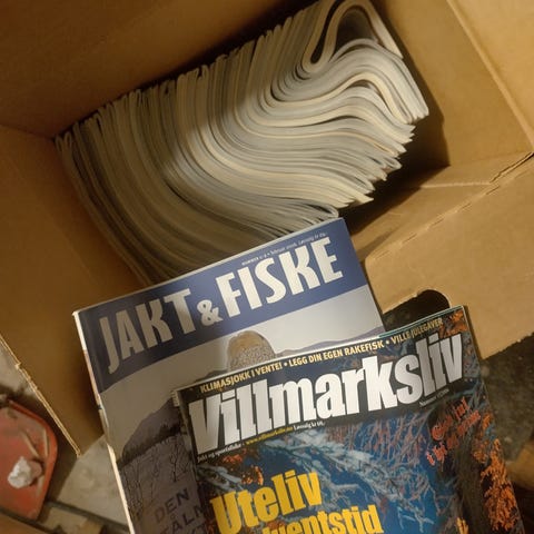 Nærmere 85 blader fra Jakt & Fiske selges 200 kr samlet. De er som nye,de fleste er ikke bledd i. Koster 99 kr pr.blad i butikk,så her får du masse godt lesestoff til billig penge.