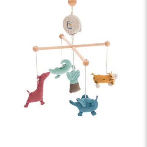 Søt uro til baby. Kan trekkes opp og spiller fin musikk. Snurrer rundt.
