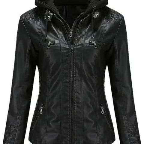 Helt ny - Stilig skinnjakke med hette og glidelåslommer, XL