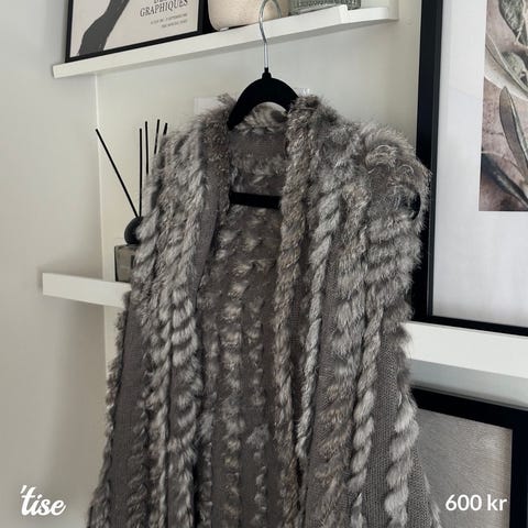 Denne pels vesten ble brukt av min mor på tidlig 2000-tallet. Den er av ekte kaninpels, strikket bak, og har paljett detaljer. Den er drit kul og tidløs y2k vintage