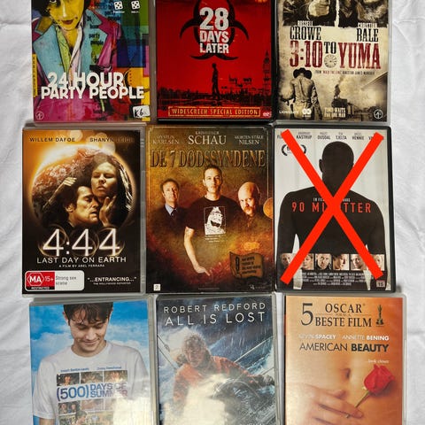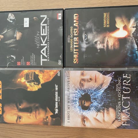 Selger DVD filmer for 10kr pr stk. Serier selges for 20kr pr stk.