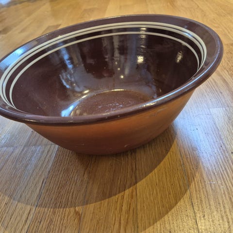 Håndlaga skål i keramikk Retroservise populært på 80-tallet