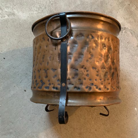 Vedkurv i kobber og smijern 38cm selges