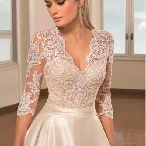 Ermeløs søt hvit bluse med blonder foran og knepping bak str M