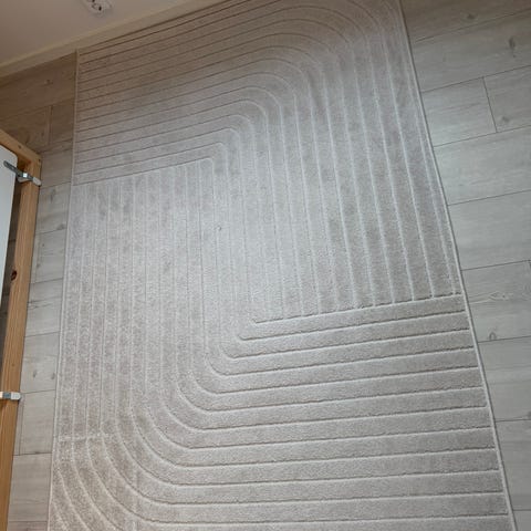 Kjøpt for to uker siden. Pent og nett. Lett å rengjøre. Beige grønt, off white og brune detaljer.