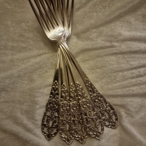 Selger 7 stk Vintage Gaffler fra Hell 1960-70 19,4cm Er brukt så bruksspor skafter er meget pent