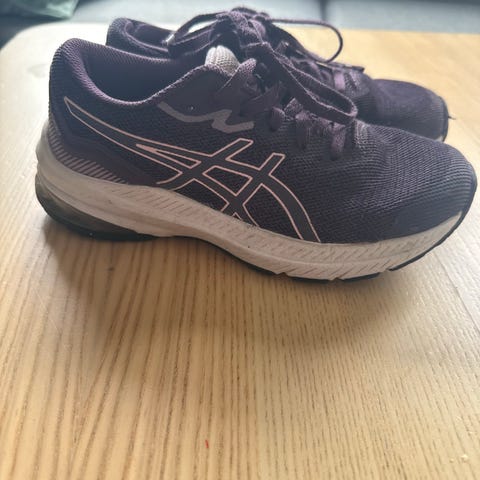Asics GT-1000 11 PS joggesko, farge deep plum, str.34,5. Slitesterk og behagelig joggesko med pustende mesh i overdelen. Praktisk borrelåslukking gjør det enkelt å ta skoene av og på. Dropp: 7 mm. Vekt: 175 g. Lite brukt før de ble for små.