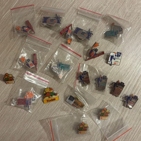 Selger OL pins 1994 og noen reklame pins i fin stand 32 stk.