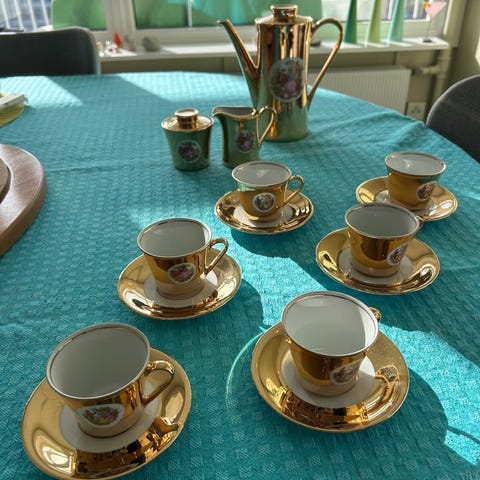 Eschenbach Bavaria kaffeservise - porselen hvit med blå dekor og gullkant