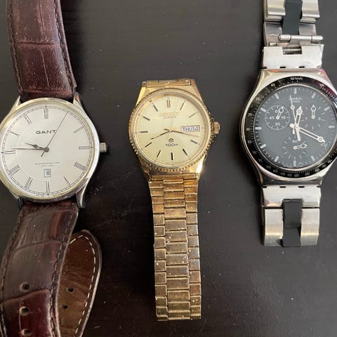 Alle armbåndsurene er ca 20 år gamle. Aldri vært satt i gang. Selges slik.
