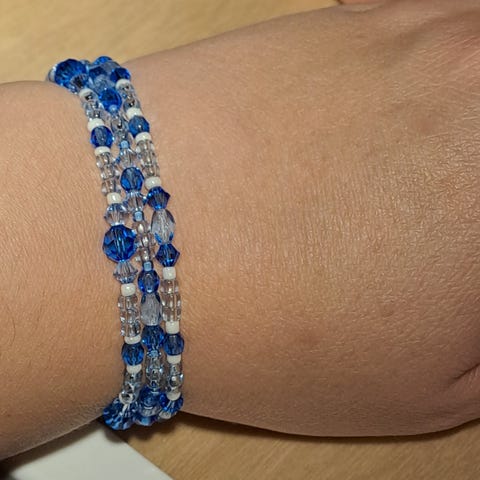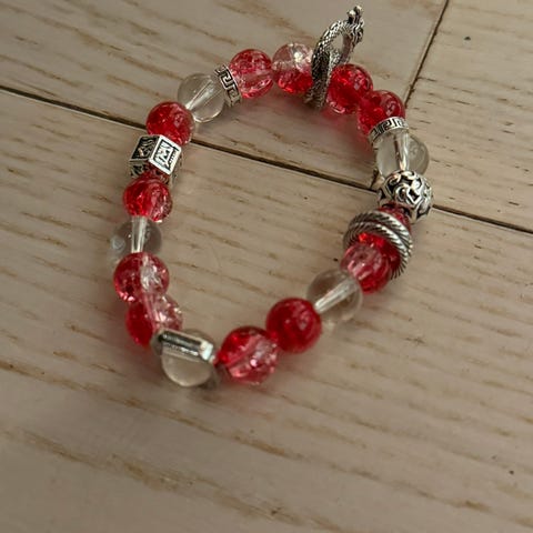 17. Mai armbånd, i røde, hvite og blå, glassperler, kan reguleres fra ca. 19-22 cm.