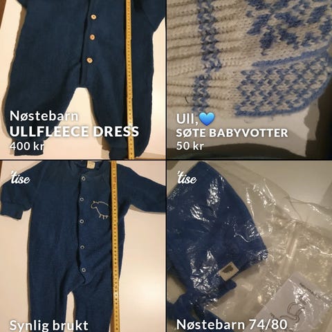 Nøstebarn bukse. Str 74/80. Hull på ene kneet. Fikses lett ved å sy.
