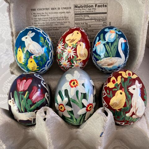 Disse eggene er i hønseegg størrelse og har bånd til oppheng.