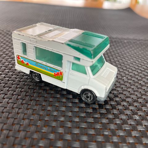 Metall majorette lekebil, lett bruksslitasje. Bra fjærer og hjul, soltak kan åpnes, hengerfeste ok. Skala 1/54.