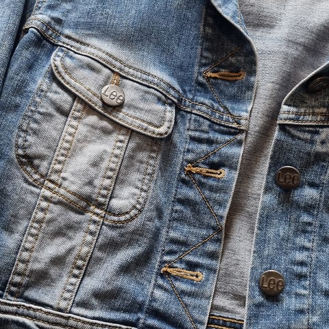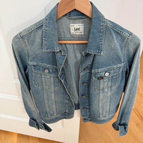 Lite brukt Lee dongerijakke i str M. Fin vadket blåfarge. Passer flott til sommerkjole og jeans. Normal i str og litt stretch i stoffet.
