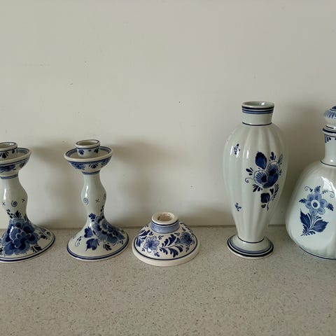 Nydelig krukke fra Delft i blått & hvitt med lokk.