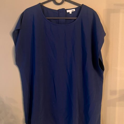 Pent brukt topp / t-skjorte i blankt stoff med steiner langs halsen. Merket er Blu fra Vic.