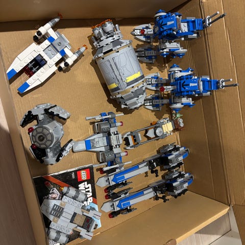 Legoplater for Star Wars, andre romskip og fly, sorte og hvite.