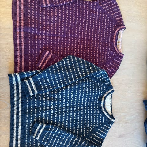 Flott, varm og god genser - super til bruk hele året. Beige og lys brun i fargene. Strikket til jente, men kan like gjerne brukes til gutt. Lite brukt.