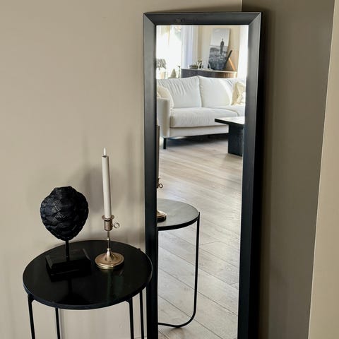 Stort veggspeil med ramme og sprosser i smijern str 75*120 cm