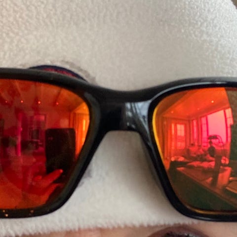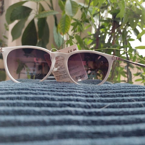 Selger flotte, nye solbriller med grå karm , blank glass og svart brillestang.