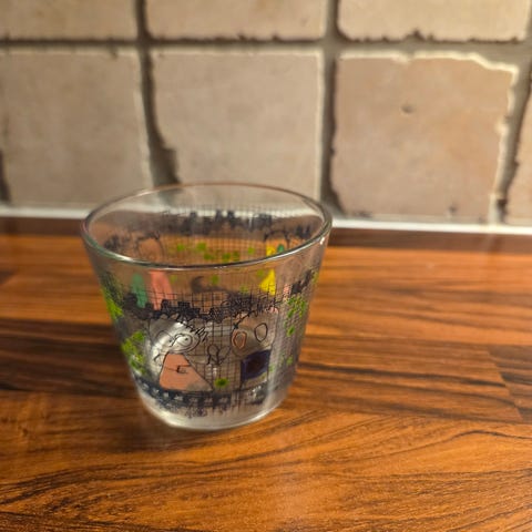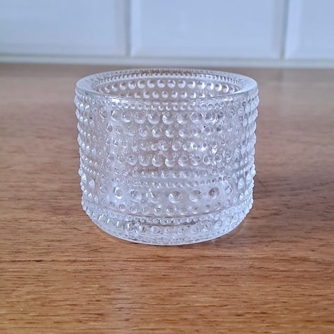 Søt liten telysestake i glass med gullkant