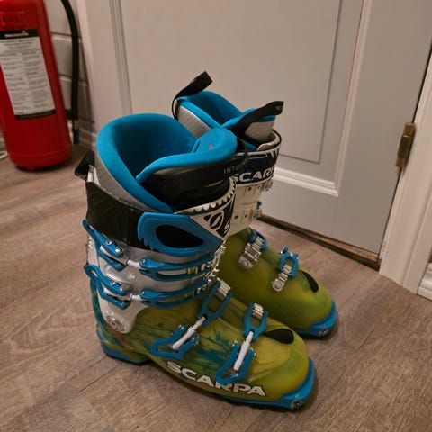 Rando/Toppturstøvel for dame. Supre gå-/kjøreegenskaper, stilig design, 27 grader utslag i gåmodus, flex på 120. Fullverdig randostøvel. Vekt 1650 gram/støvel.