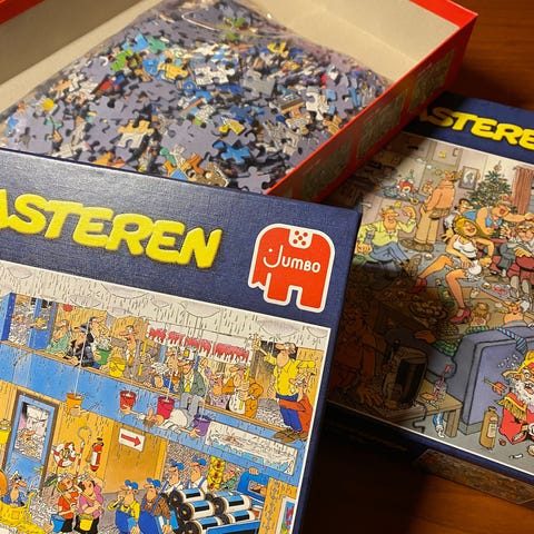 Består av 9 brett, 13,5cm x 13,5 cm. Sammensatt er hundebildet 40cm x 40 cm.