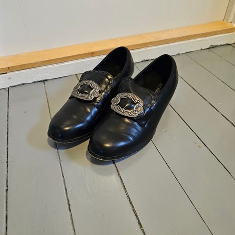 Mørk blå, pent brukt, str 5 1/2 (tilsvarer 38)