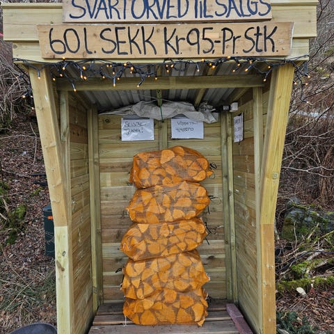 1100,- per palle. Selger tørr og god ved fra furu. Furuved gir rask og god varme. Perfekt for kalde dager.