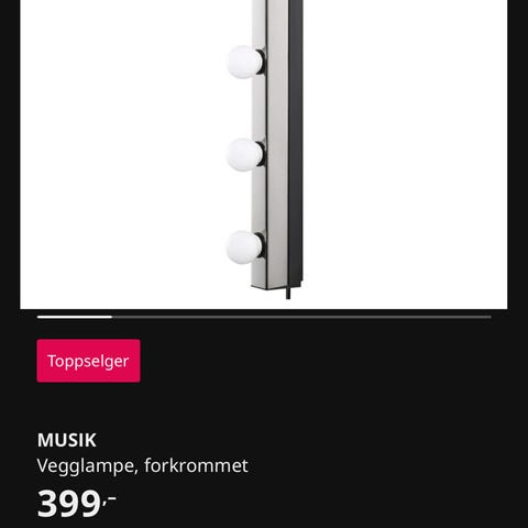 Har 4 ubrukte lamper, som er kjøpt for under 1 år siden. 2 plafonder og 2 baderomslamper, Selges 800kr samlet.