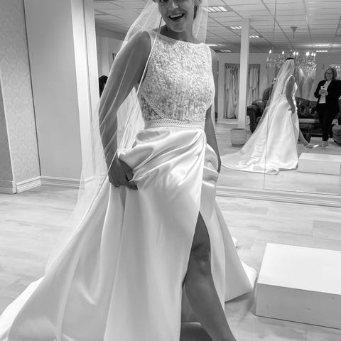 Drømme brudekjolen selges! Egen design utført av Handmade Oslo. Håndsydd med nydelige detaljer, laget av italiensk silke. Unikum som du ikke finner andre steder! Brukt 1 gang❤️str42
