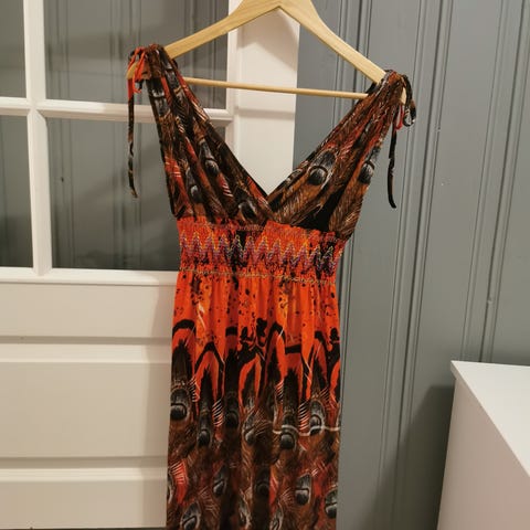 Står at kjolen er str S, men oppleves som mye større i str. Mener at den tilsvarer en stor M/liten L . Passer også S, men da blir den litt mer oversized.
