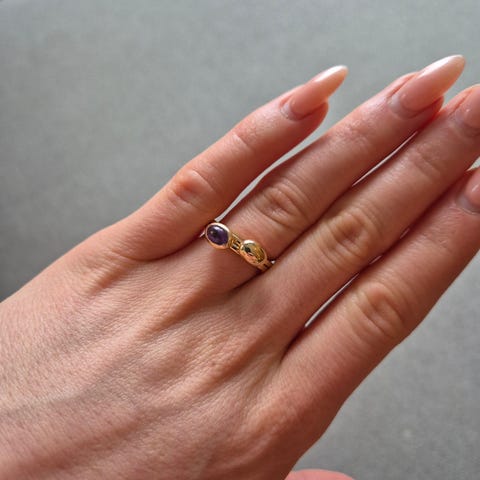 Eldre ring i gull med 5 safirer. Verifisert av gullsmed.
