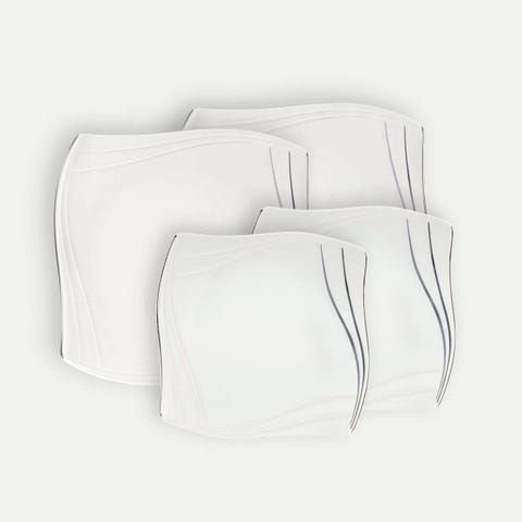 Hvorav 4 sett med tallerkner fortsatt ligger i originalemballasje