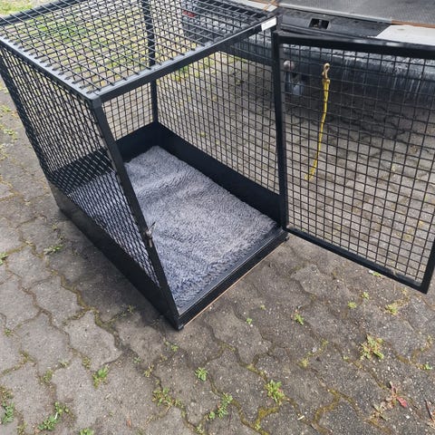 Hjemmelaget hundebur selges da vi nå har 2 hunder. Har vært brukt til en staff på ca 20 kg å han har hatt veldig god plass. Lengde 118 cm Dybde 65 cm Høyde 73 cm