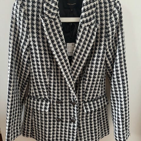 Selger en nydelig, lett blazer fra Carla Giannini Paris i en lys beige farge. Blazeren har to lommer foran, én knapp for lukking og oppbrettede ermer for en avslappet look. Perfekt for vår og sommer!