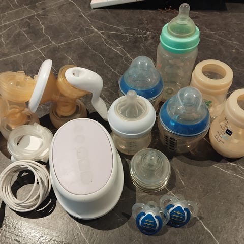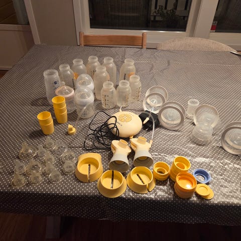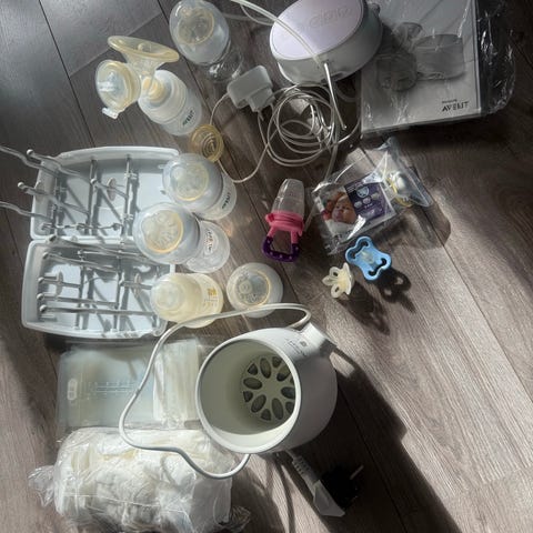 Alt samlet for 1000. Melk pumper, flaske varmer og flaske renser.