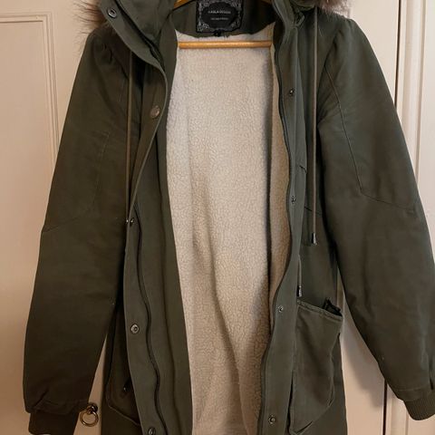 Vinterjakke med hette selges.