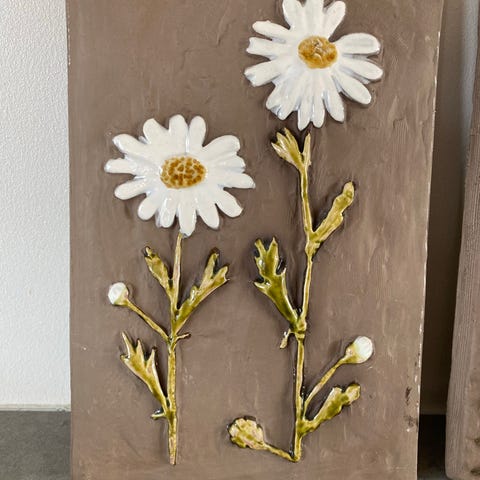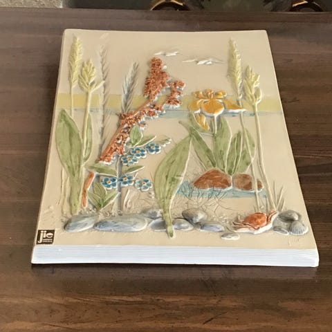Flott pynt fra Jie Sweden-flotte bilder til å henge på vegg-keramikk/leire(usikker)flotte er de-100 pr stk.