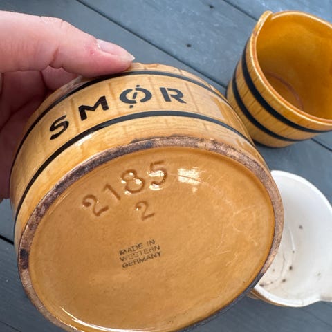 - lite, enkelt og stilrent sett med messing farget topp. 9cm høye 50kr