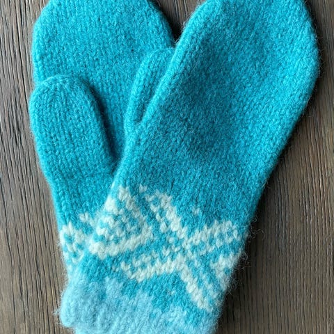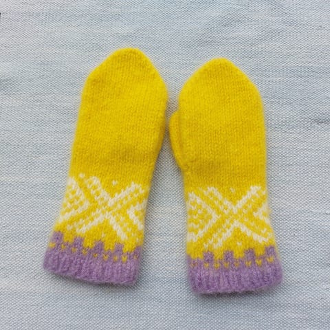 Ubrukt hjemmestrikka votter i mariusmønter.