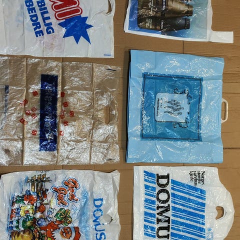 Eldre plastposer selges for 70 kr pr stk. Kjøp minst to.